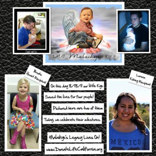 On August 15, 2011 our Malaikye entered the Gates of Heaven. But, not before he changed the lives of four people in desperate need. My son Daniel in the powerlessness of his grief, chose to donate Malaikye’s organs. Our baby was used by God to save the lives of four strangers. The reality of this is that God did grant a Miracle that day. He granted four! He answered the fervent prayers of parents, grandparents, sisters, brothers and friends of these recipients. And for this, we are eternally grateful that others did not have to suffer the loss of their family member. The ages of his recipients ranged from 9 months to 65 years old.